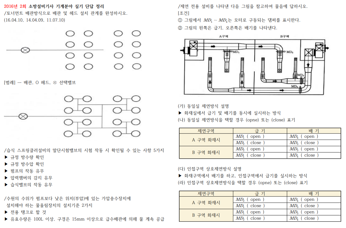 2016년 소방설비기사 기계 실기 단답 정리