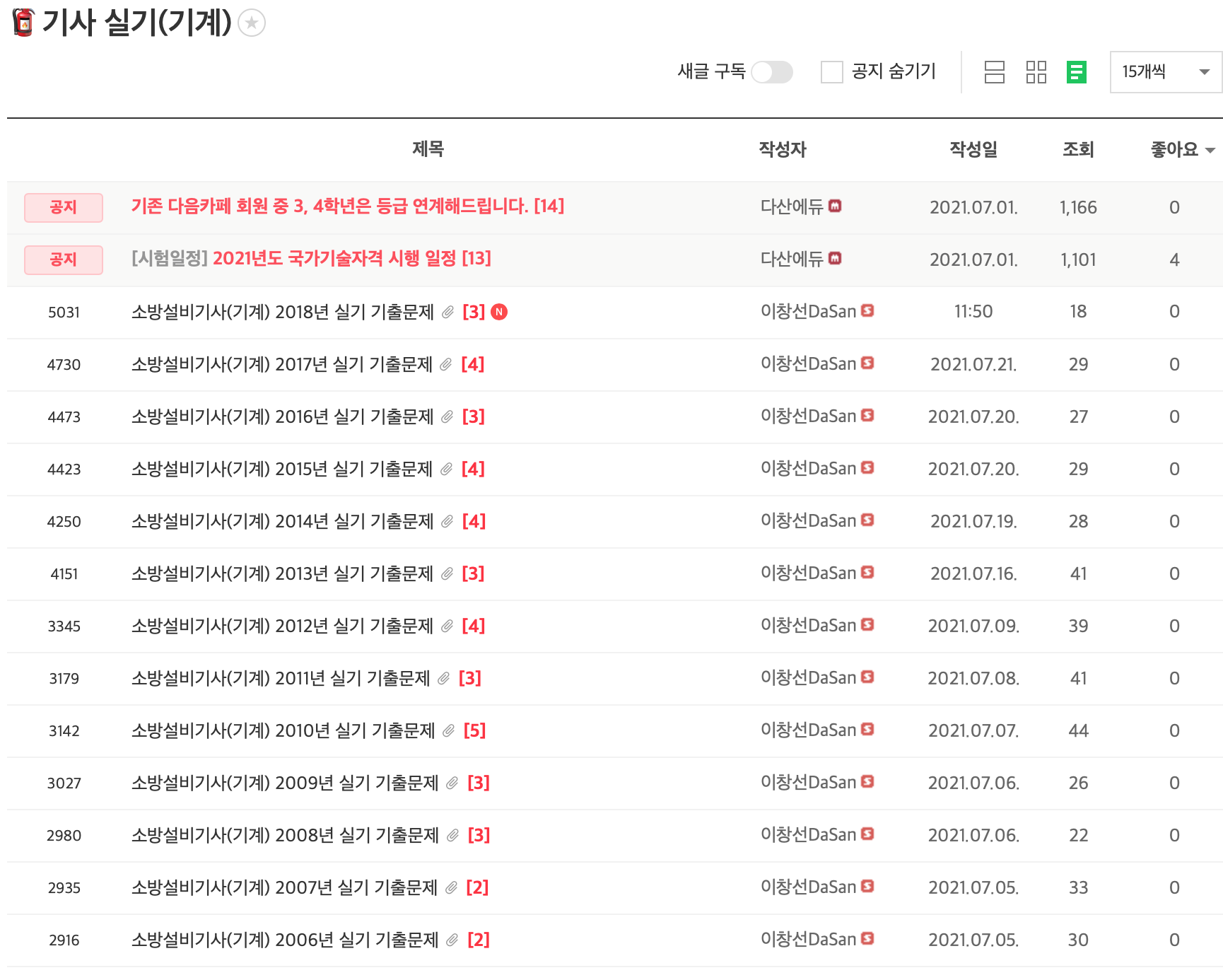 전기기사하면 대표적으로 떠오르는 사이트 다산에듀가 다음카페에서 네이버카페도 생기면서 전기+소방+승강기 통합되었습니다. 다음카페 인원이 11만명인데 네이버카페도 얼른 인원이 많아졌으면 좋겠습니다.